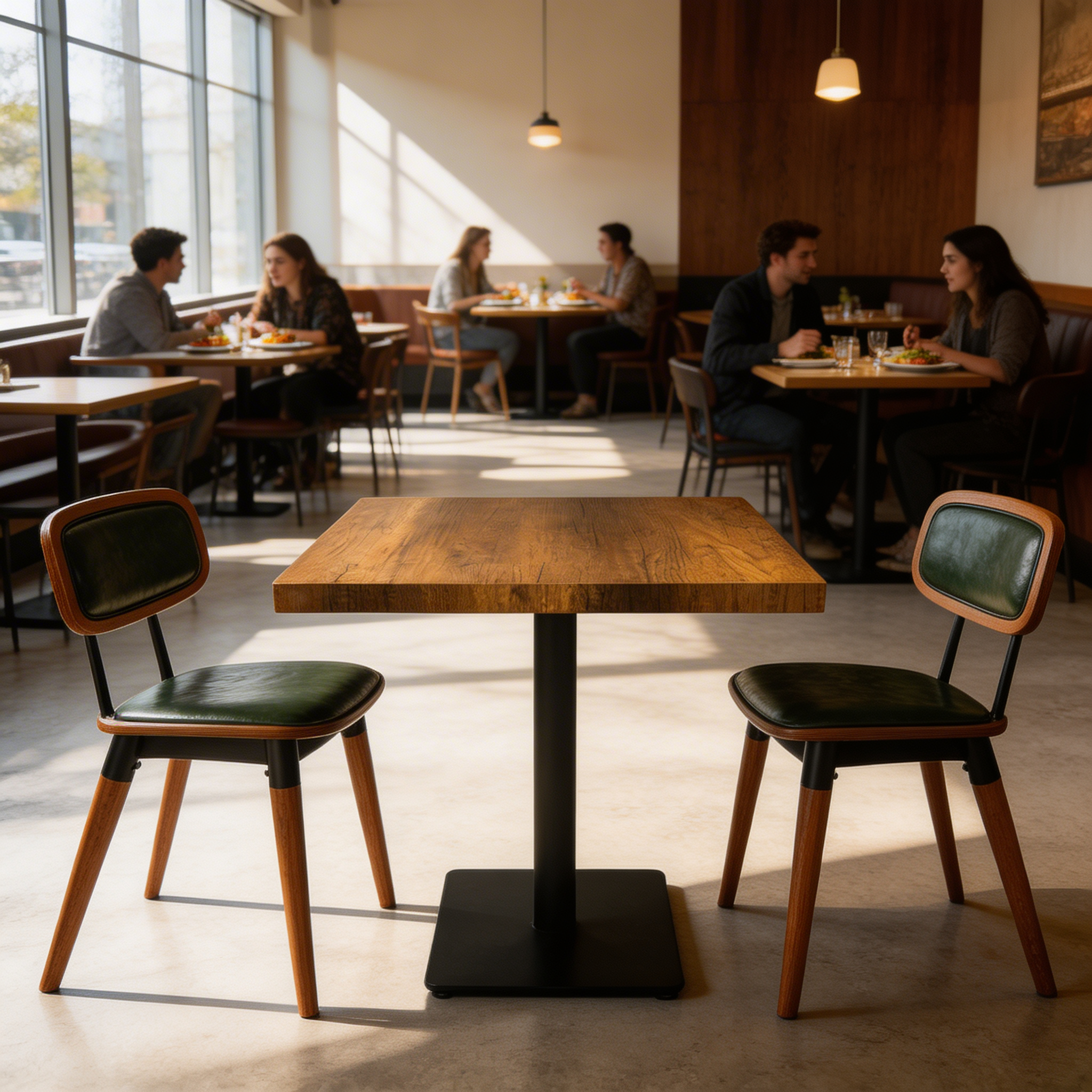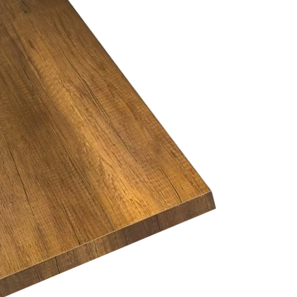 Die 30 mm starke MDF-Tischplatte in hochwertiger Echtholzoptik sorgt für eine ansprechende Holz-Optik bei gleichzeitig hoher Strapazierfähigkeit. Kein Massivholz, sondern pflegeleichtes und formstabiles MDF – optimal für den professionellen Gastronomiebereich.