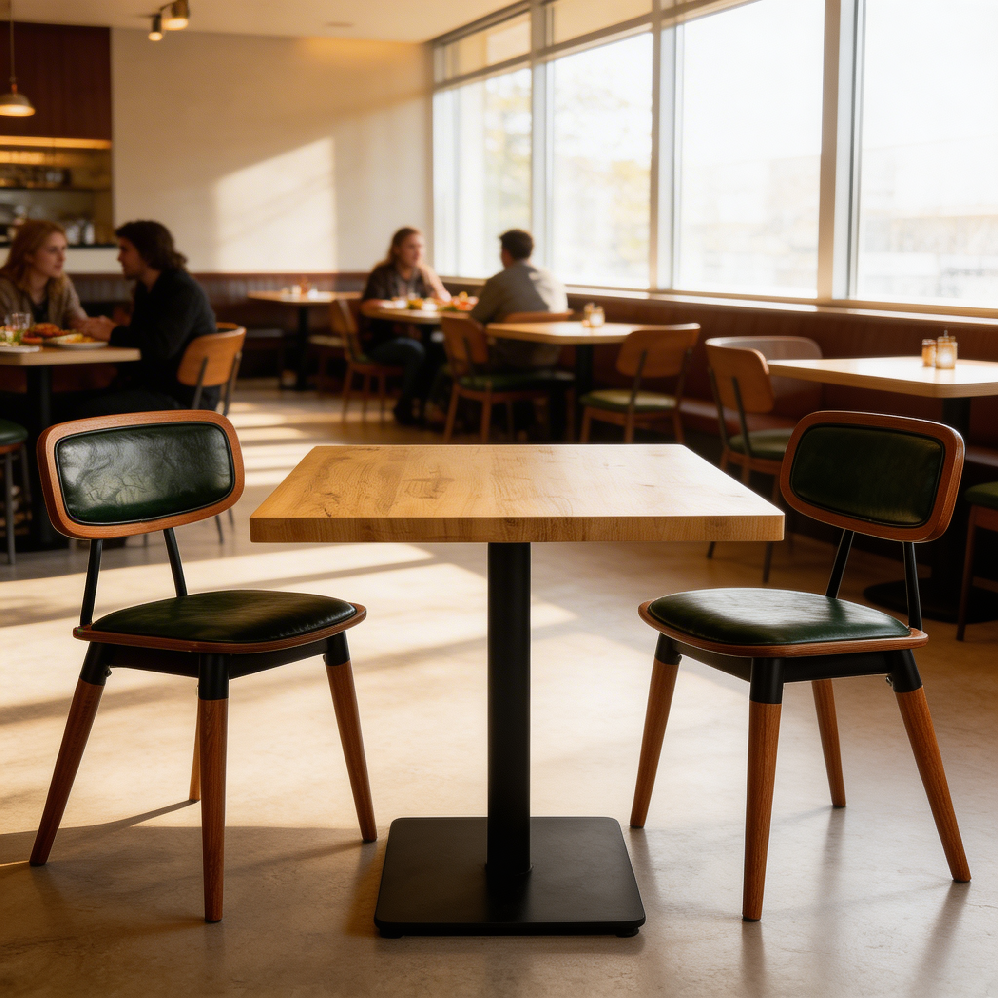 Die 30 mm starke MDF-Tischplatte in hochwertiger Echtholzoptik sorgt für eine ansprechende Holz-Optik bei gleichzeitig hoher Strapazierfähigkeit. Kein Massivholz, sondern pflegeleichtes und formstabiles MDF – optimal für den professionellen Gastronomiebereich.