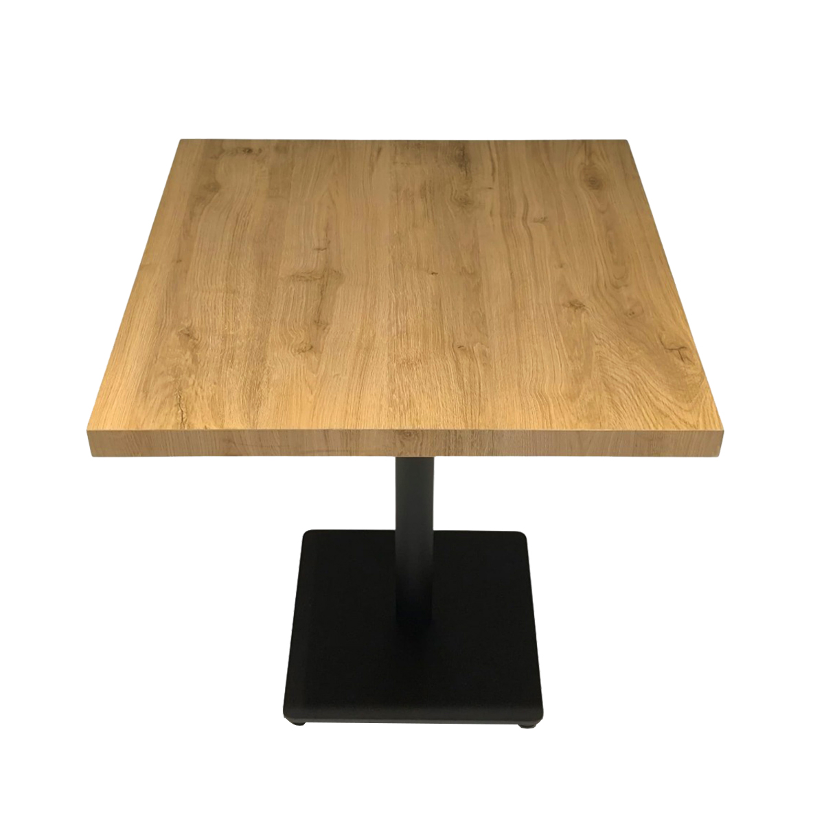 Gastro Tisch 69x69 cm Hellbraun Ancona – Bistrotisch mit Vierkantsäule in Holzoptik