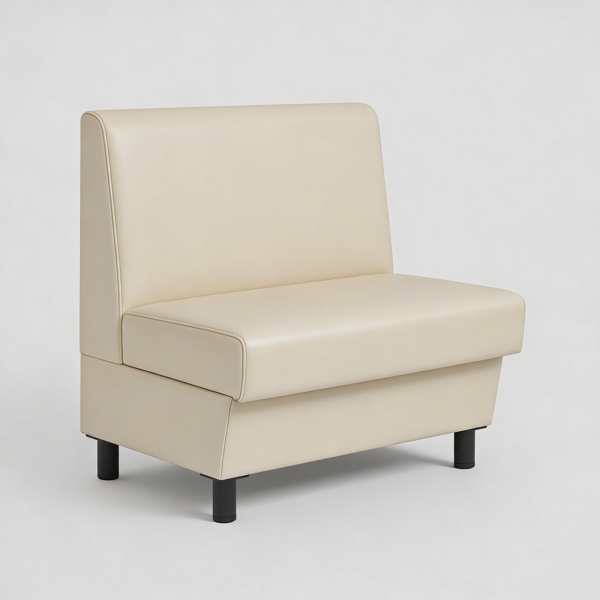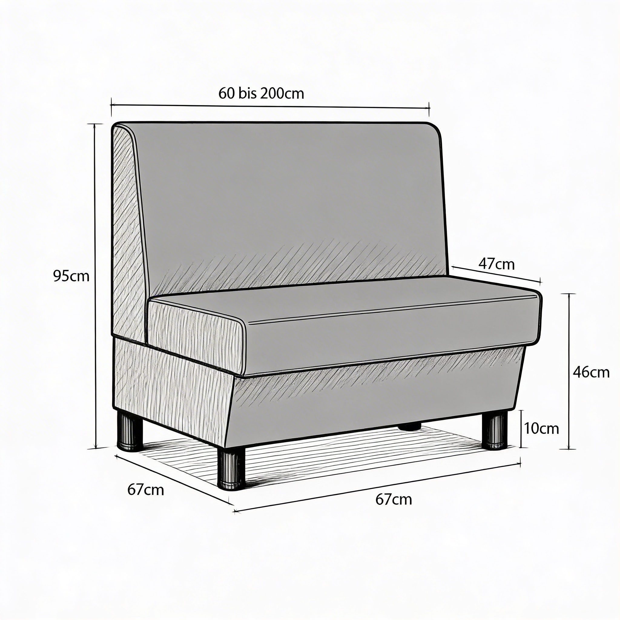 Ein weiterer praktischer Vorteil ist das Gestell mit stabilen Stehfüßen. Dadurch entsteht ein Bodenfreiraum von ca. 10 cm, der die Reinigung unter der Sitzbank deutlich erleichtert. Selbst Staubsaugerroboter oder Reinigungsgeräte können problemlos unter der Bank hindurchfahren, was besonders im Gastronomiebetrieb Zeit spart und für zusätzliche Sauberkeit sorgt.