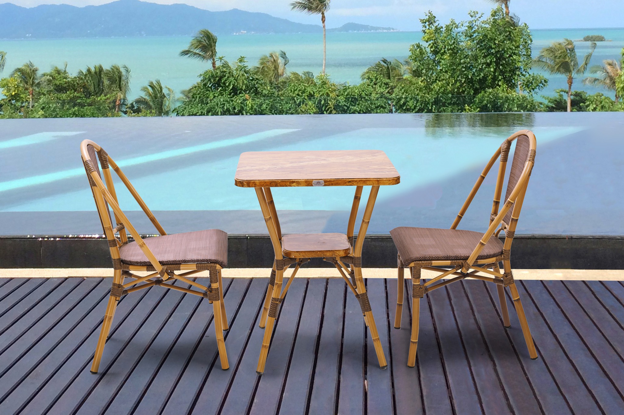 Outdoor Bistro Stuhl Braun Safari Bambus Optik stapelbar ohne Armlehne