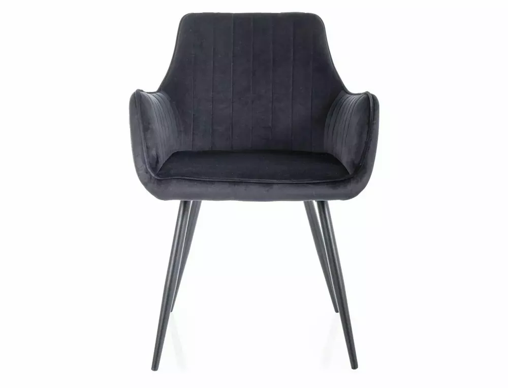 Restaurant bistro chair Silvia velvet fabric in black with armrest